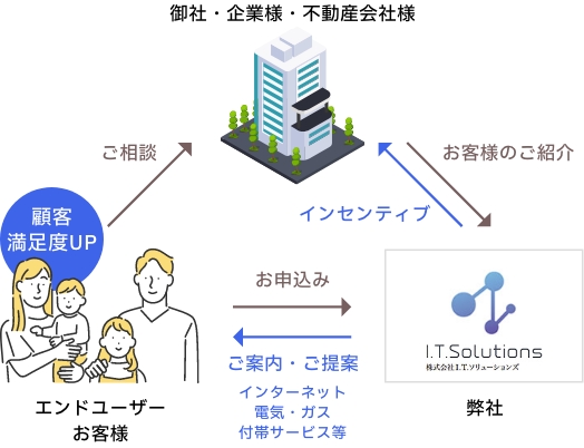 弊社がマンション・アパートの入居者様やその他企業様のお客様向けに、